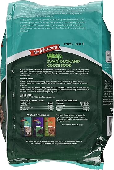 Mr Johnsons Wildlife Swan/Duck food is a complementary food that can be fed to a large range of wildfowl.