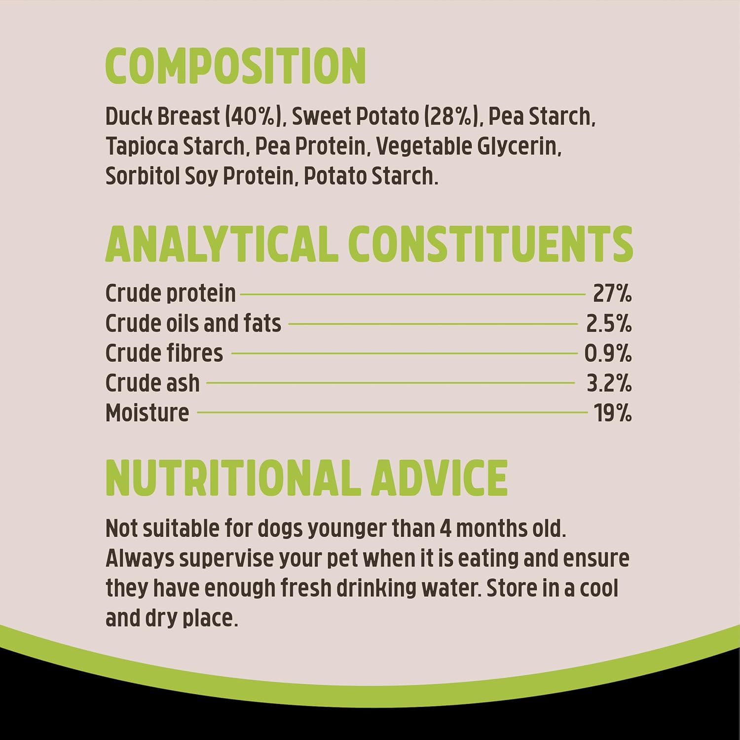 • REAL DUCK & SWEET POTATO – TASTY DOG TREATS: Made with real duck and sweet potato, these chewy sticks are a delicious and satisfying reward for your pet. Great for Dogs who love meaty treats
