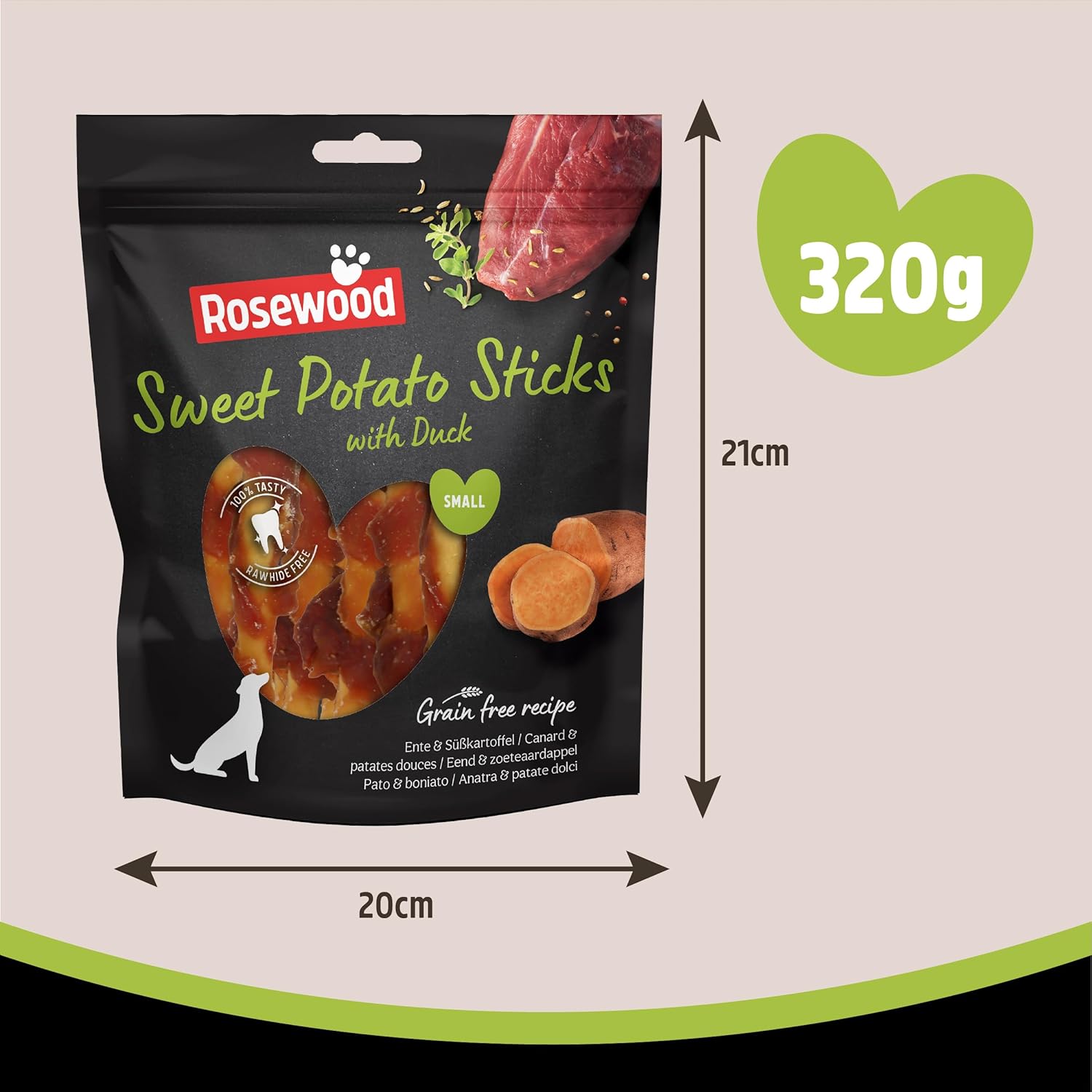 Rosewood Small Duck and Sweet Potato Sticks for Dogs – Real Meat Treats, Grain-Free, High Protein, Supports Dental Hygiene, No Added Sugar, No Artificial Colours or Flavours (320g Value Pack)